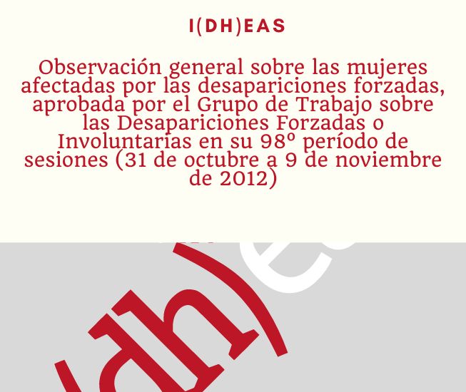 Observación general sobre las mujeres afectadas por las desapariciones forzadas, aprobada por el Grupo de Trabajo sobre las Desapariciones Forzadas o Involuntarias en su 98º período de sesiones (31 de octubre a 9 de noviembre de 2012)