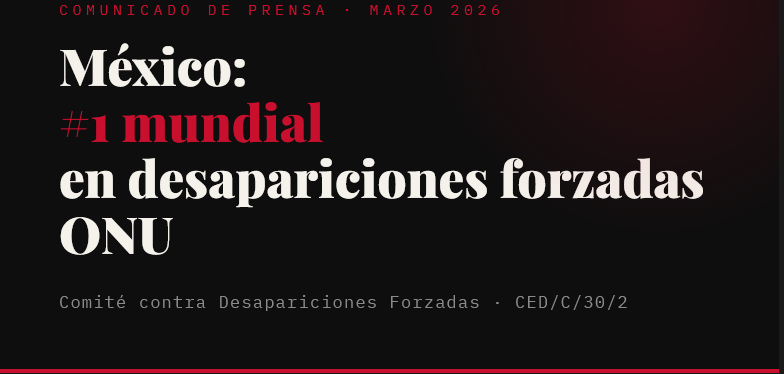 México es actualmente el Estado Parte con mayor número de acciones urgentes por desaparición forzada a nivel mundial. De acuerdo con los datos más recientes, México acumula 819 acciones urgentes acumuladas (2012–febrero 2026), se observan 40 nuevas acciones urgentes en solo cinco meses. (17 de septiembre de 2025 – 28 de febrero de 2026.) El […]